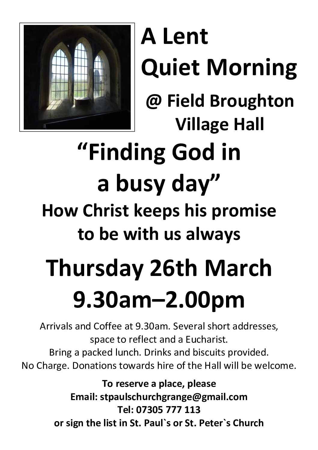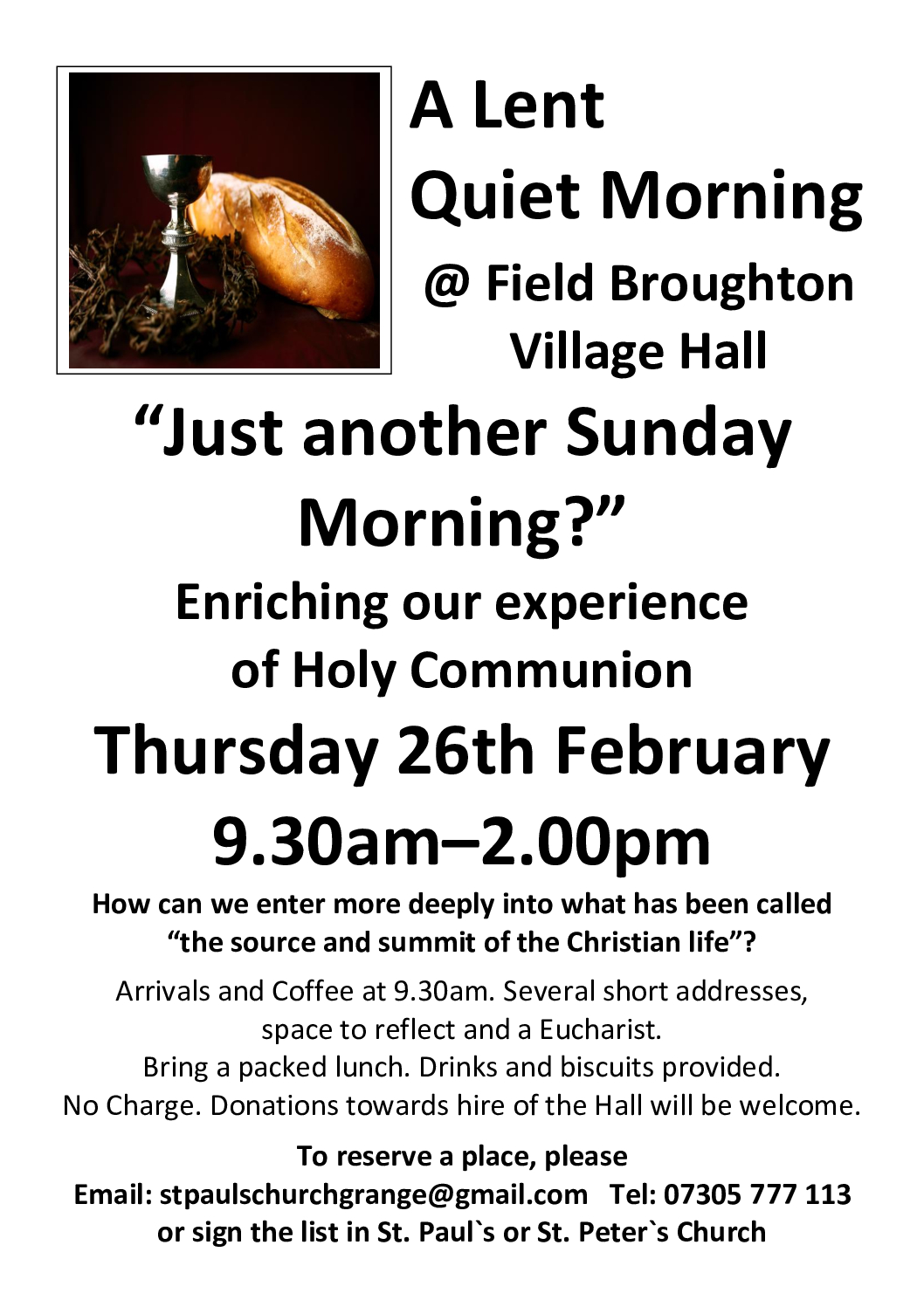 "Just another Sunday morning?" Enriching our experience of Holy Communion. How can we enter more deeply into what has been called “the source and summit of the Christian life”? Coffee […]