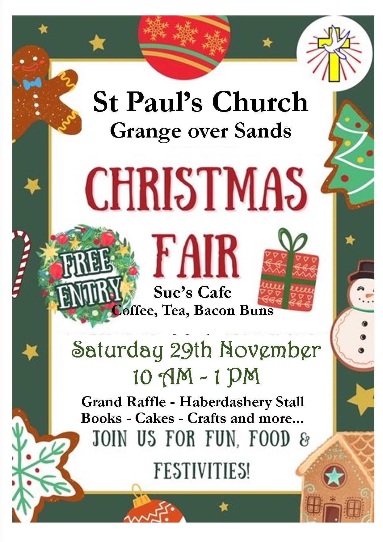 All the usual stalls - books, cakes, bottle tombola, and some new craft stalls this year, with raffle, and the cafe will be open for refreshments, including the bacon butties!!