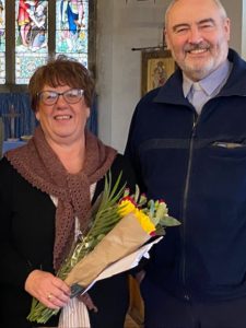 This year was a bitter sweet occasion when we came together after the main service to celebrate the Conversion of St Paul with a parish lunch, but also to say ‘Goodbye’ to Linda Brown who has served faithfully as our Parish Administrator for the past 15 years. She and her husband Paul joined us for lunch, and Linda was presented with flowers and a retirement gift. Special tributes were paid to Linda by David and by Brian, Churchwarden. She will be missed.