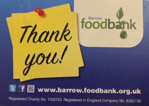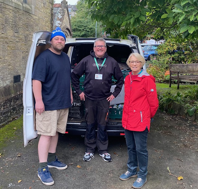 Monday morning saw the laden trays and additional large carrier bags all loaded into the van to be taken by driver Andy Wilson to the Foodbank at the back of the Baptist Church on Abbey Road, Barrow, where “the shelves are starting to look a little barren in the warehouse” – but not before calling in at St Anne’s Haverthwaite for their collection.