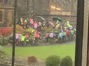 This weekend we celebrated Harvest at St Paul’s.  The Parochial Church Council had agreed that the offerings this year would be in support of the Foodbank at Barrow.  On the Friday afternoon the children from Grange Primary School walked to the church (in the pouring rain at the start of Storm Amy), bringing with them their gifts, which were presented at the altar during their special harvest festival service.  Later the gifts collected at Lindale Primary School were added.