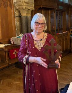 Dressed in a beautiful silk sari, Penny illustrated her talk with a series of slides, separated under the following headings: people, culture, religion, faith and issues. Also on display were various artefacts she had acquired, including items made by a women’s co-operative and a wooden replica of the Sri Lankan cross.
