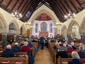 The band amused and entertained us, as well as stressing the community-uniting nature of its work as it encourages young players and oversees their learning and development, aided by financing from the band’s own fund, raised from performances like ours.  We tapped our feet, donated generously to their funds (aiding the church as well) and look forward to their next visit.  Thank you, Burneside, and to our Social Committee for bringing them to us.
