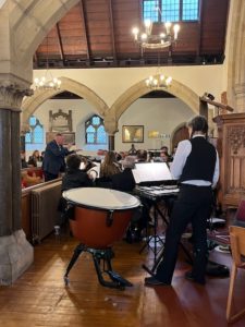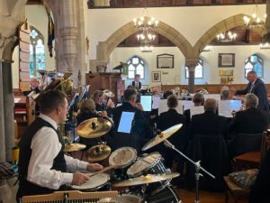 The programme opened with the rousing Sousa’s 1890 march The Liberty Bell (famous more recently as the Monty Python theme tune) which captured the audience’s attention and we proceeded through various arrangements of known (and less well known) melodies which featured different parts of the band: a hymn tune by Howard Cuthbert, showing the depth of sound of the band as a whole, Drummer’s Delight  to show the talents of Simon Carr on the drums, Calling Cornwall which was commissioned by the BBC as theme music for BBC Radio Cornwall, and Grandfather’s Clock played as a euphonium solo by Eleanor Knowles, for whom this was her final performance with the band as she is now moving on to a more demanding musical environment.  We wish her well.  A version of a Russian folk song Kalinka concluded the first half.