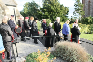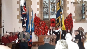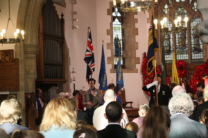 On Sunday, 10th November, representatives from across the community joined together in a memorable service at St Paul’s Church to mark the 80th anniversary year of the start of the Second World War. The service had been devised by the Very Revd Nigel McCulloch, former Bishop of Manchester, and the Revd Sue Wilson presided, with clergy from the Roman Catholic, Methodist and United Reformed Churches also taking part. The Deputy Lt of Cumbria Jane Irwin and the Mayor of Grange Peter Endsor led the wreath bearers, which included the voluntary service organisations. The Union Flag and Standard of the Royal British Legion led the procession of banners of the uniformed organisations. Readings were given by the Head of Cartmel Secondary School, the Year 1 teacher from the local primary school (who provided a choir).