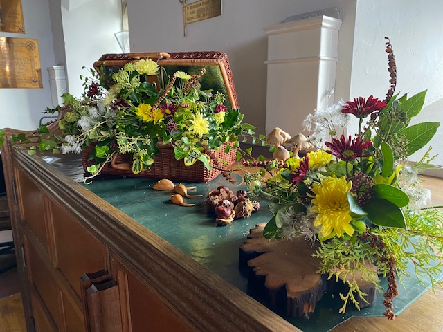 The church was beautifully decorated for harvest, and the Primary School had prepared a special display.