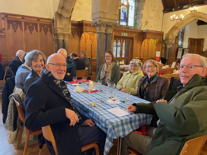 The service was followed by the annual patronal lunch, and what a feast was laid out – turkey, ham, salmon and vegetarian quiche, with a variety of salads, and an amazing choice of sweets.