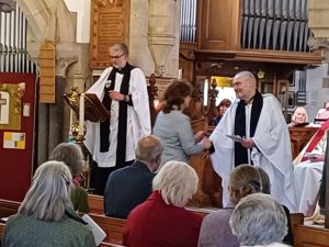 It was a very happy occasion as the Right Reverend Rob Saner-Haigh (Bishop of Penrith, and Acting Bishop of Carlisle) licensed the Rev’d David Wilmot as Team Vicar of the Parishes of St Paul, Grange-over-Sands, and St Peter, Field Broughton with Lindale. David was then duly installed by the Venerable Vernon Ross (Archdeacon of Westmorland and Furness).
